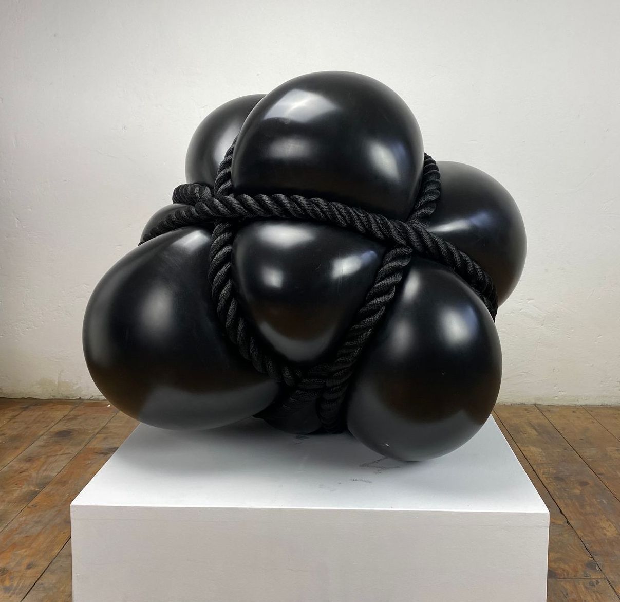 BLOW UP, 190 x 60 cm including Basellava base, black patinated bronze/black rope, edition of 3, 2016