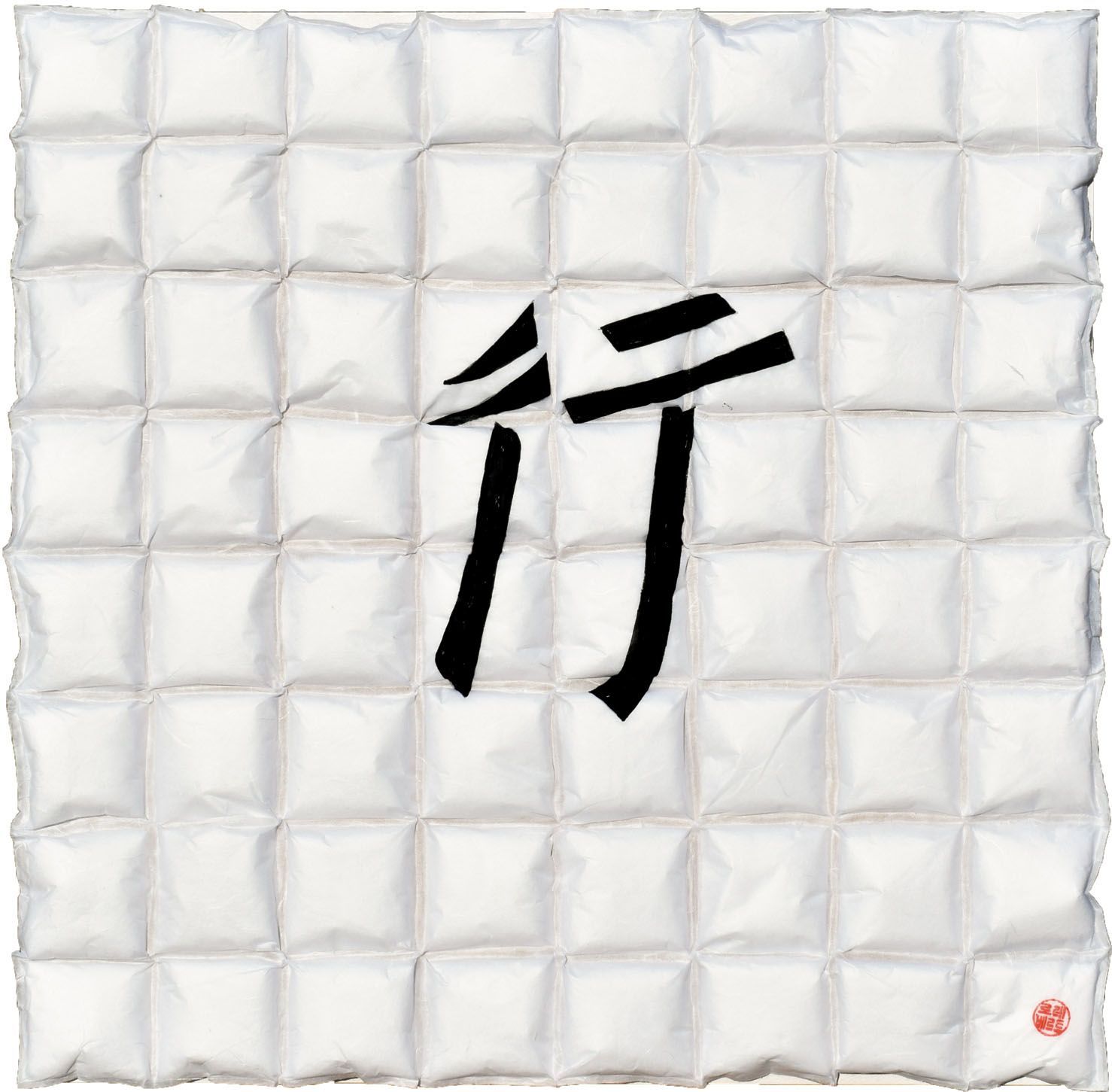 Travel (Chinese), transparent with Japanese paper and ink, 50 x 50 cm, 2021