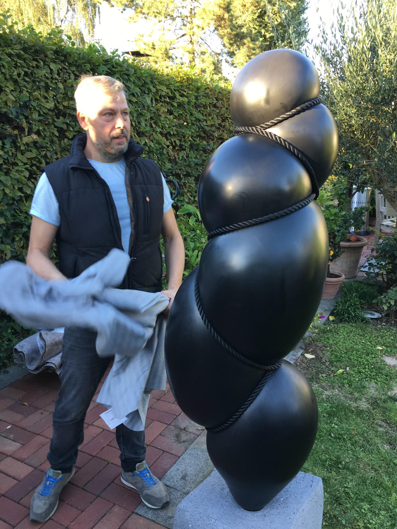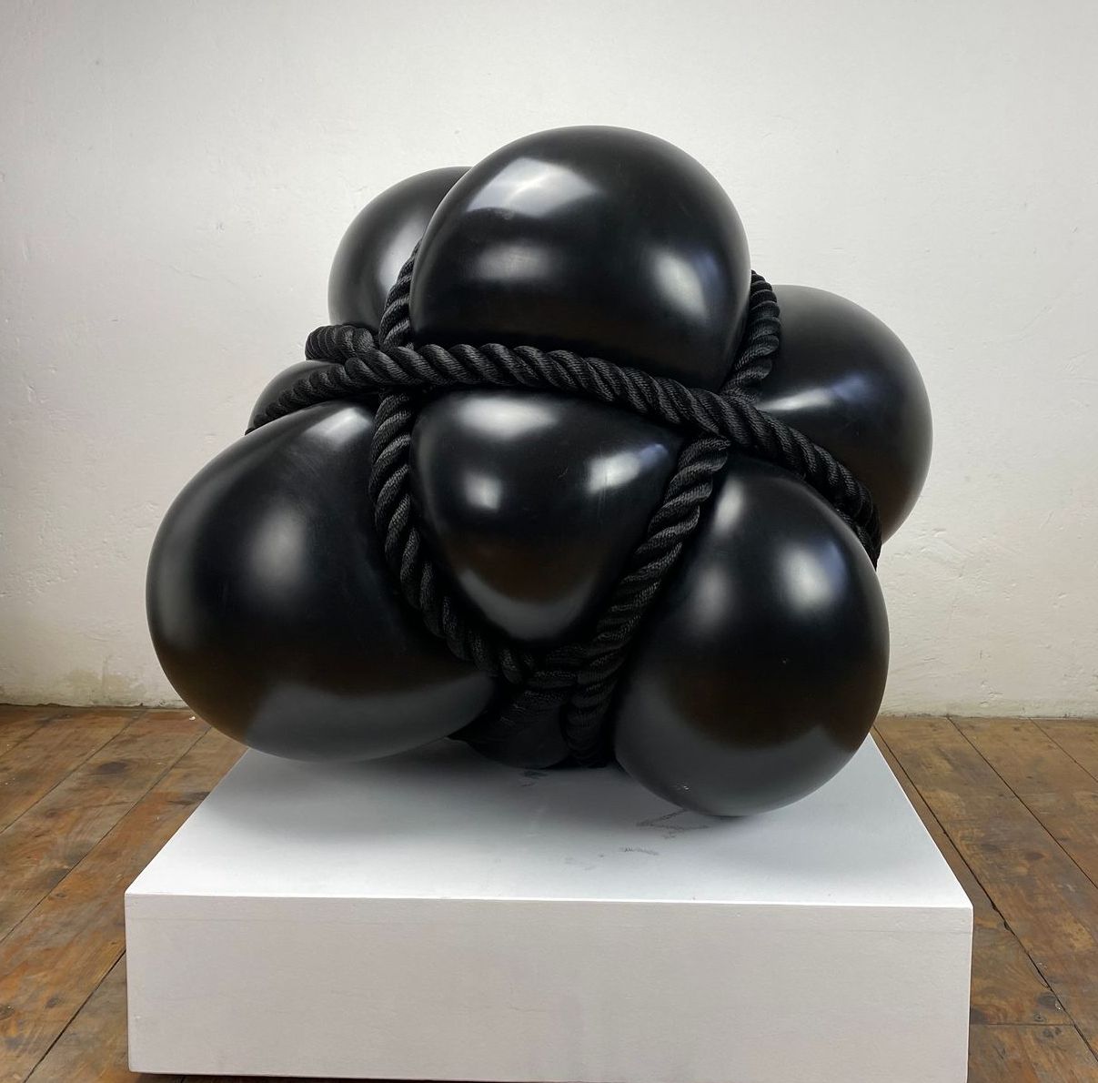 BONDAGE, 40 cm, black marble/black rope, unique piece, 2023