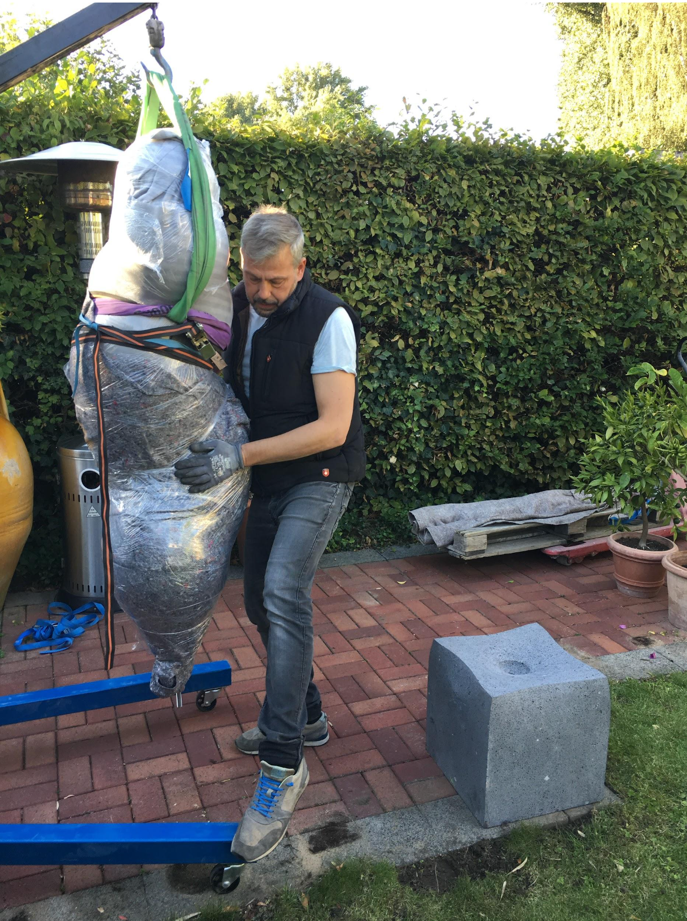 BLOW UP, 190/60 cm including basalt base, aluminum/lacquer/black rope, 3-piece edition, 2023